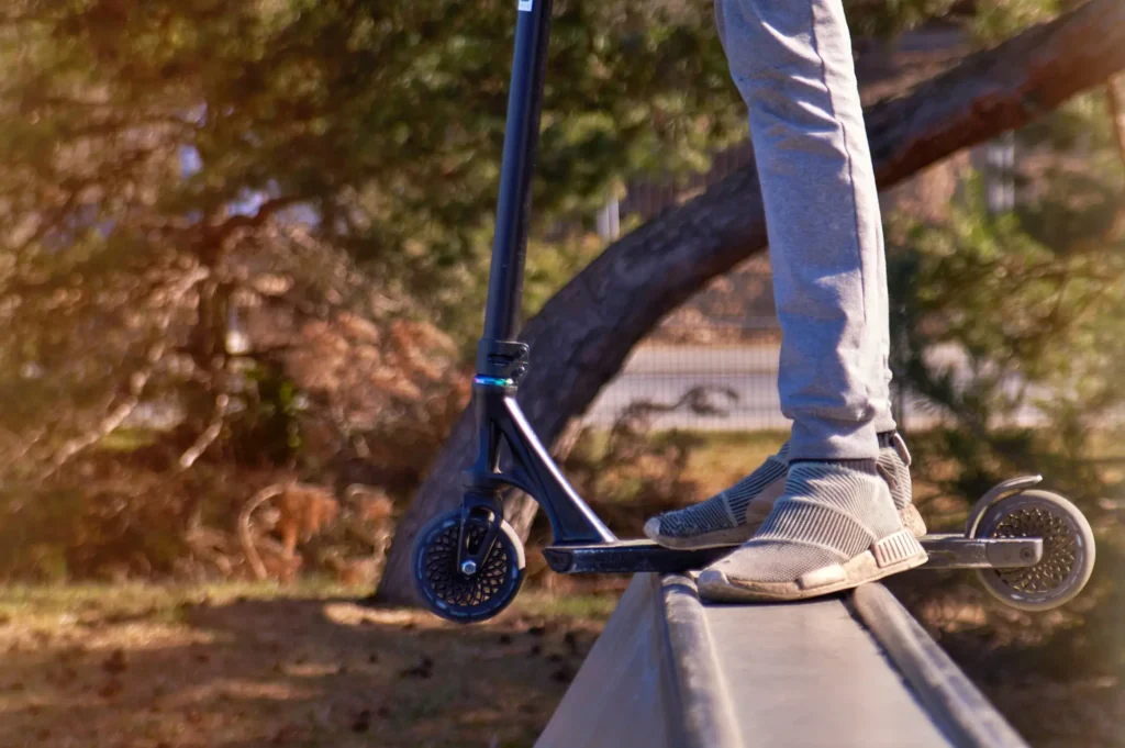 Lenker: Im Gegensatz zu herkömmlichen Rollern verfügt ein Stunt-Scooter über einen T-Lenker anstelle eines klappbaren Lenkers.